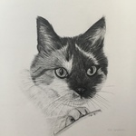2018Izzy, de huiskat, getekend op A5 formaat met potlood.